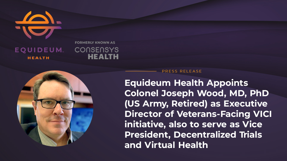 January 21st, 2022, Washington, DC – Today, Equideum Health (formerly ConsenSys Health), a ConsenSys partner and Mesh portfolio company creating Web3 person-centered healthcare and research networks, announced that it has appointed Colonel Joseph Wood, MD, PhD, USA (Ret.) as Executive Director of the VICI (Veterans Incentivized Coordination and Integration) initiative, a collaboration with Dixon Center for Military and Veterans Services backed by Global Blockchain Ventures, which focuses on improving veterans’ health. Dr. Wood will also serve as the company’s Vice President, Decentralized Trials and Virtual Health. In these new positions, Dr. Wood will draw upon his extensive medical, clinical research, and regulatory experience in the United States military and in civilian practice in addition to his long-standing interest in applying transformative technologies, such as telemedicine and blockchain, to address healthcare challenges.